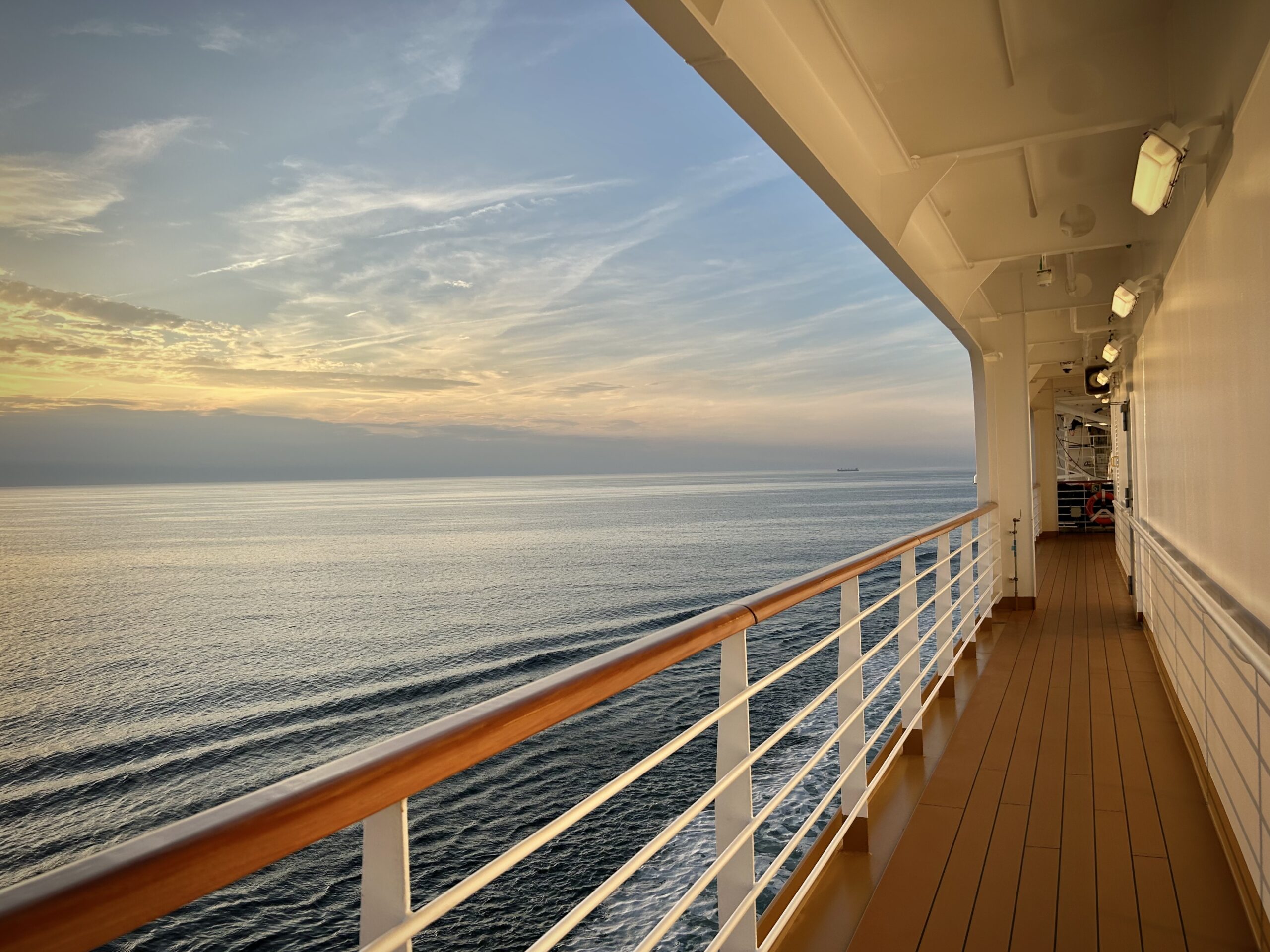 Na een heerlijk diner is er niets fijner dan een ontspannen wandeling over het Panorama Deck. Dit dek loopt helemaal rond het schip, waardoor je een prachtig 360-graden uitzicht hebt over zee.