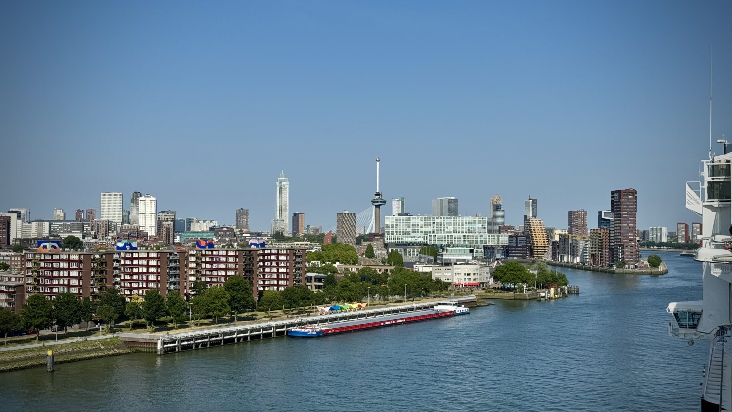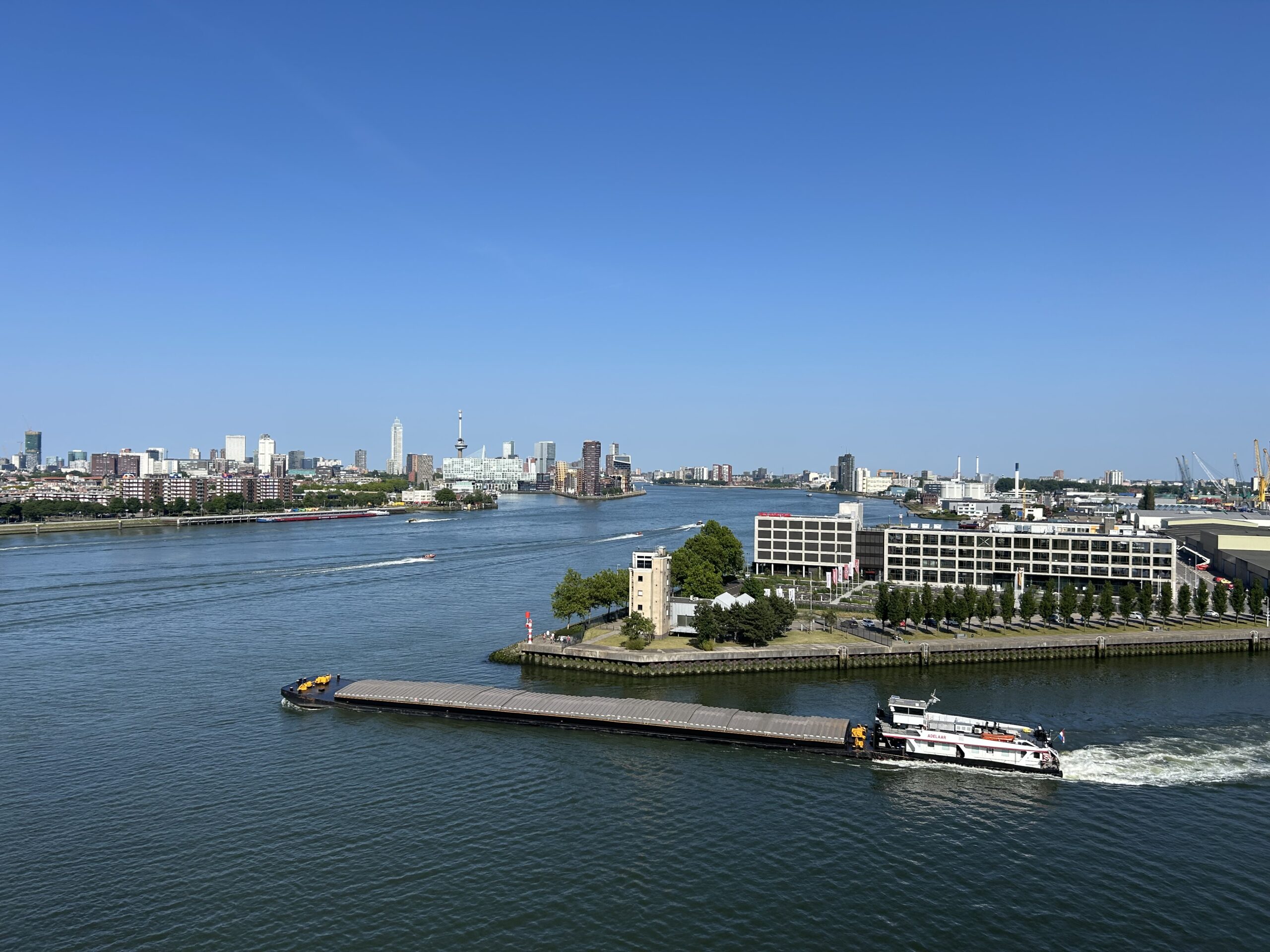 Vanaf het dek hadden we een adembenemend uitzicht op Rotterdam, de iconische skyline, de Erasmusbrug, de bedrijvigheid in de haven… het blijft elke keer weer bijzonder om de stad zo vanaf het water te zien.