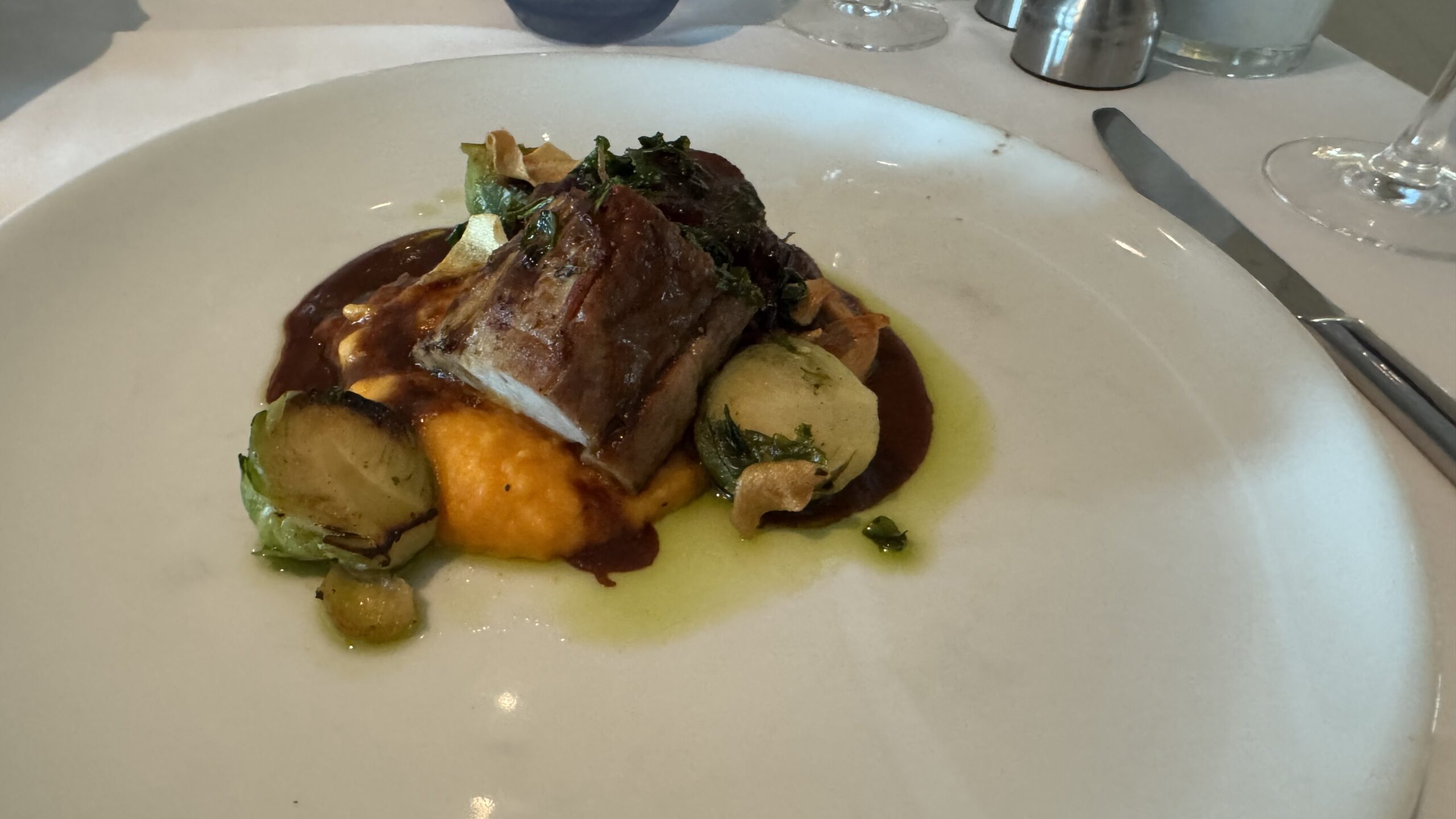 Het menu biedt elke avond een gevarieerde selectie van gerechten, van internationale klassiekers tot verfijnde seizoensgerechten, met altijd vegetarische en gezonde opties. De kwaliteit van het eten is uitstekend en alles wordt met zorg gepresenteerd. De bediening is vriendelijk en attent, en zorgt ervoor dat je niets tekortkomt.