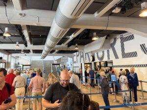 In de terminal begon het echte werk: eerst werden onze documenten gecontroleerd, daarna door het detectiepoortje, en vervolgens het officiële inschepen. Je paspoort en boardingpass worden gescand, en er wordt ter plekke een foto van je gemaakt voor aan boord. Alles verliep verrassend vlot en professioneel.