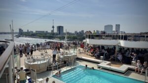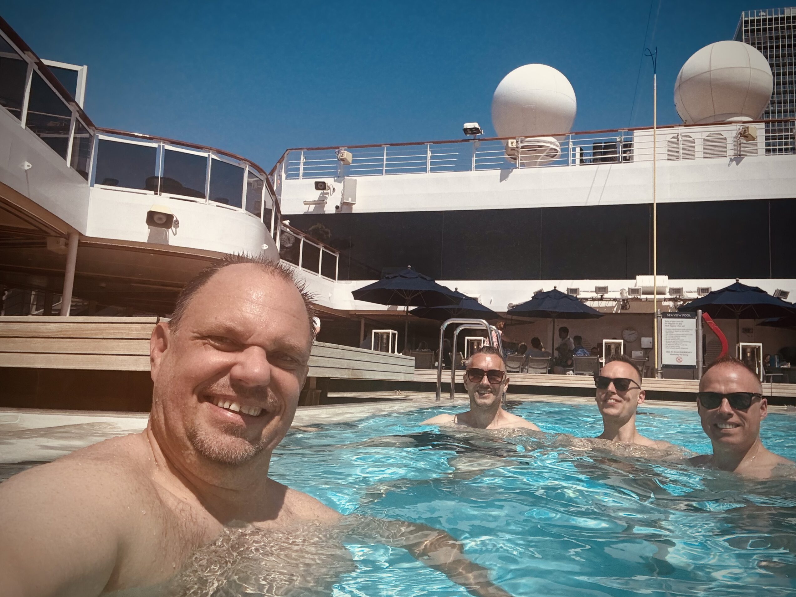 Wij hadden bijvoorbeeld onze zwemkleding bij de hand en dat bleek een topidee! Na een korte lunch was het tijd voor het echte vakantiegevoel: snel naar het dek en het water in!