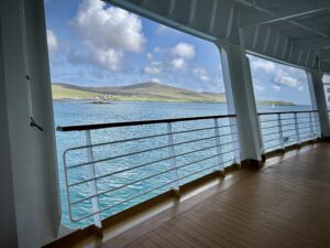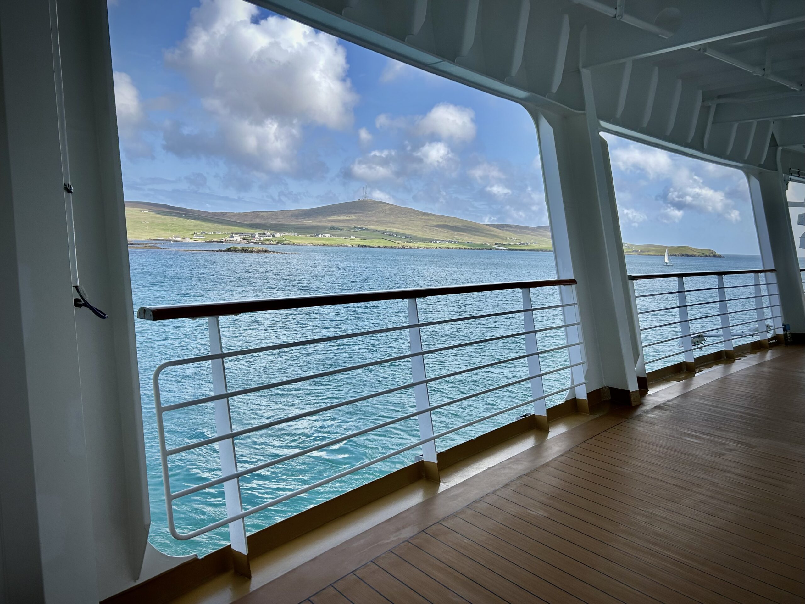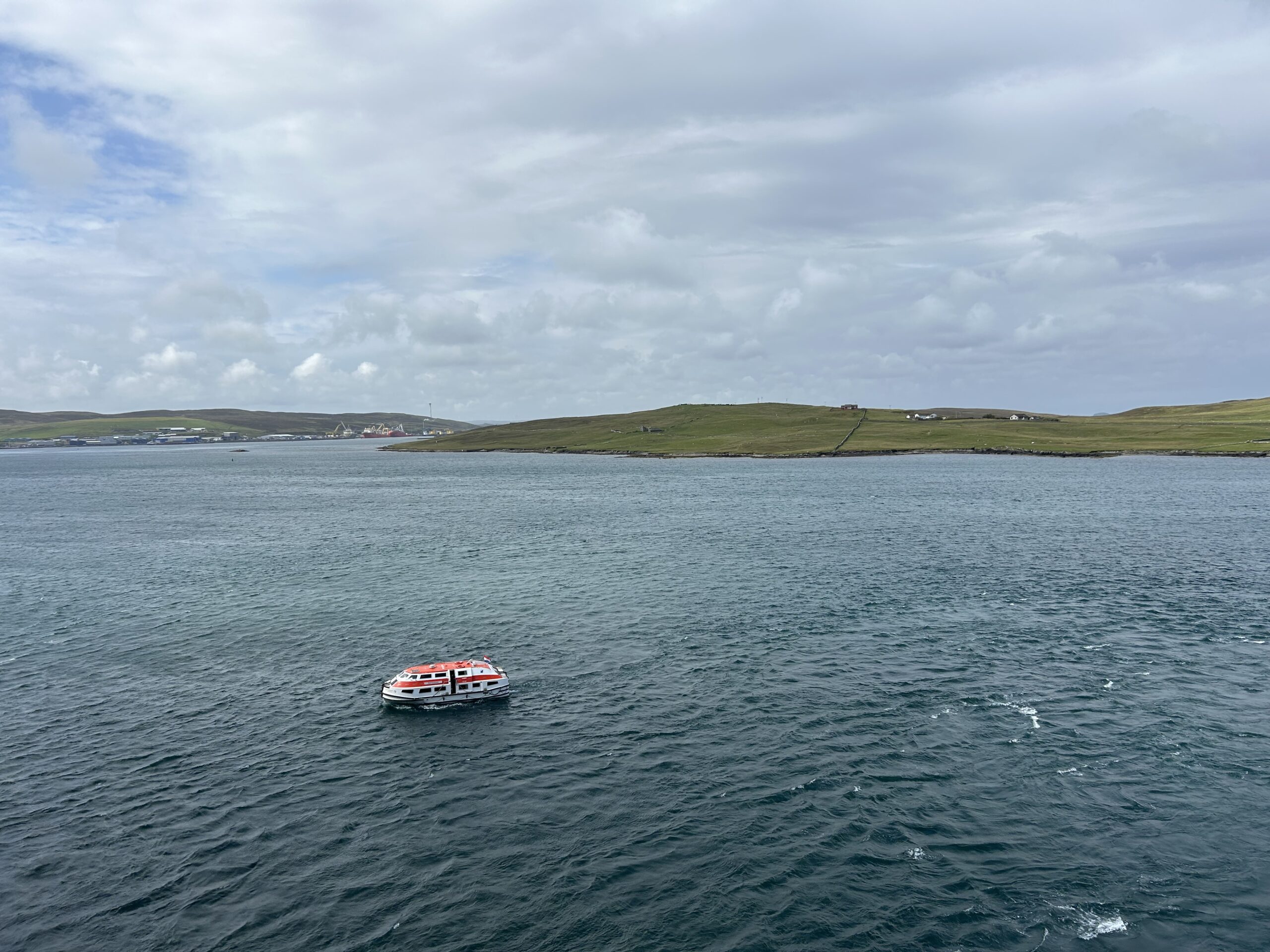 Vanmorgen arriveerden we in Lerwick, de charmante hoofdstad van de Shetlandeilanden. Het is de tweede keer dat we hier met een cruiseschip aanmeren, en het weer? Precies zoals je het je voorstelt: nat, grijs en fris, typisch Shetland!