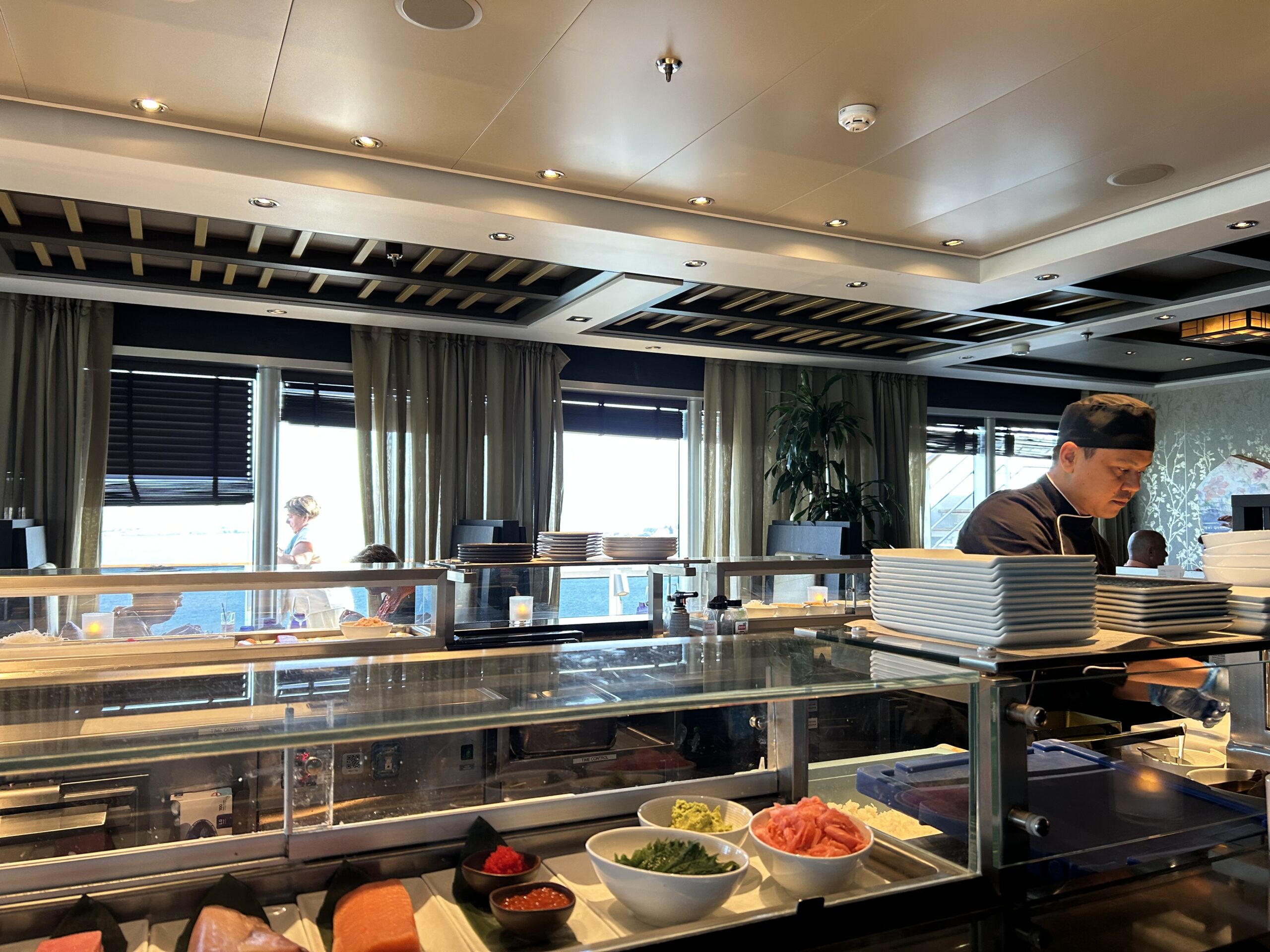 Vanavond genoten wij van een bijzondere ervaring in de stijlvolle sushi bar Morimoto at Sea, het exclusieve restaurant van de wereldberoemde chef Masaharu Morimoto, bekend van onder andere Iron Chef.